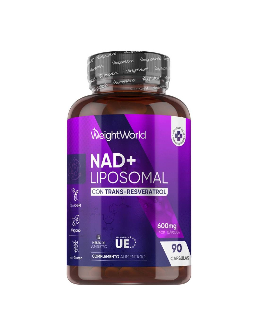 O suplemento NAD+ Lipossomal com Resveratrol da WeightWorld combina moléculas essenciais para promover energia celular, vitalidade e bem-estar geral.