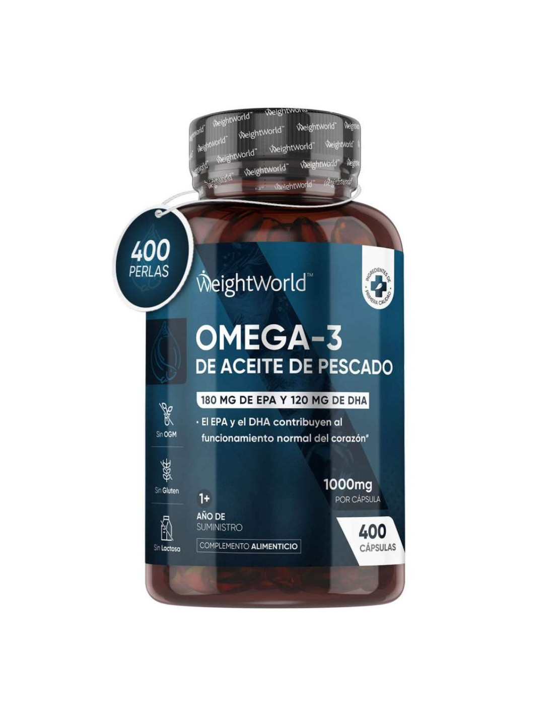 O suplemento de Óleo de Peixe Ômega 3 1000 mg da WeightWorld é uma fonte premium de ácidos graxos essenciais EPA e DHA, que contribuem para a saúde do coração, cérebro e visão. Cada cápsula fornece 1000 mg de óleo de peixe, incluindo 180 mg de EPA e 120 mg de DHA, mantendo as funções vitais do corpo e fortalecendo cabelos, unhas e dentes.