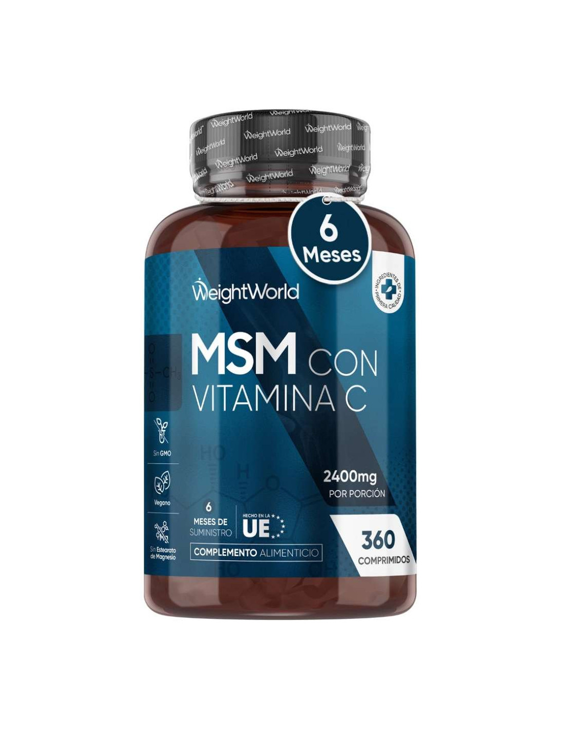 O Suplemento WeightWorld MSM + Vitamina C para Articulações foi desenvolvido para apoiar a saúde das articulações e promover o bem-estar geral. Cada porção de 2 comprimidos fornece 2400 mg de MSM e 100 mg de Vitamina C, nutrientes essenciais que ajudam a manter a função normal do corpo e protegem as células contra o stress oxidativo.