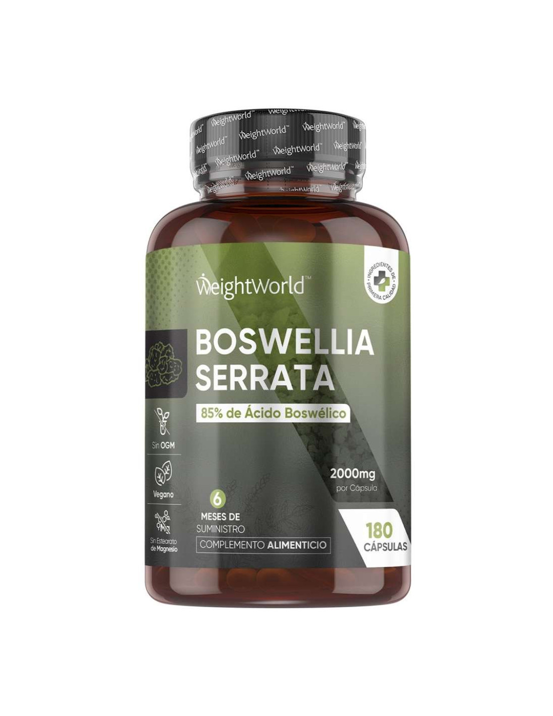O WeightWorld Extrato de Boswellia Serrata 2000 mg 180 Cápsulas para Articulações, Ossos e Músculos é um suplemento natural formulado para apoiar a saúde articular, óssea e muscular. Cada cápsula contém 2000 mg de extrato de Boswellia Serrata padronizado com 85% de ácido boswélico, conhecido pelas suas propriedades anti-inflamatórias e analgésicas.