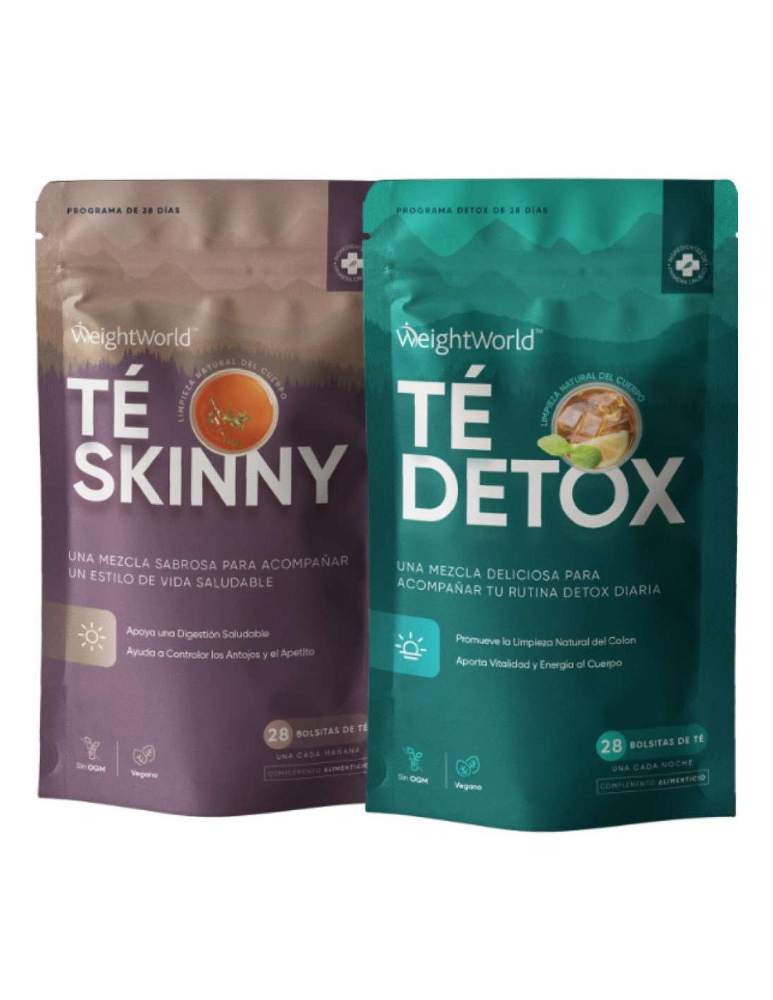 O WeightWorld Skinny Tea + Detox Tea oferece um plano de 28 dias para apoiar a sua rotina de saúde e bem-estar. Cada pacote contém 28 saquinhos de chá emagrecedor e 28 saquinhos de chá detox, ideal para consumo diário: uma xícara de chá emagrecedor de manhã e uma de chá detox à noite.