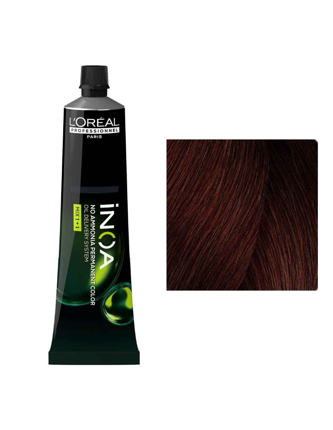 A L'Oréal Professionnel iNOA 4.56 Castanho Vermelho Acaju foi desenvolvida para proporcionar resultados de cor intensos e luminosos sem utilizar amoníaco.