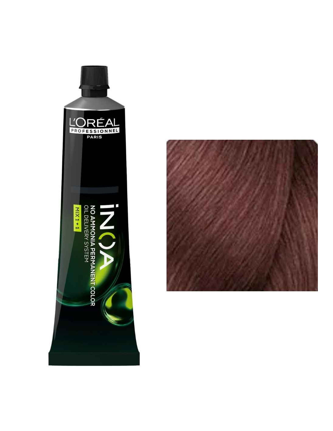 A L'Oréal Professionnel iNOA 5.25 Castanho Claro Acajou Irisado é uma coloração permanente profissional desenvolvida para proporcionar resultados de cor intensos e naturais sem utilizar amoníaco.