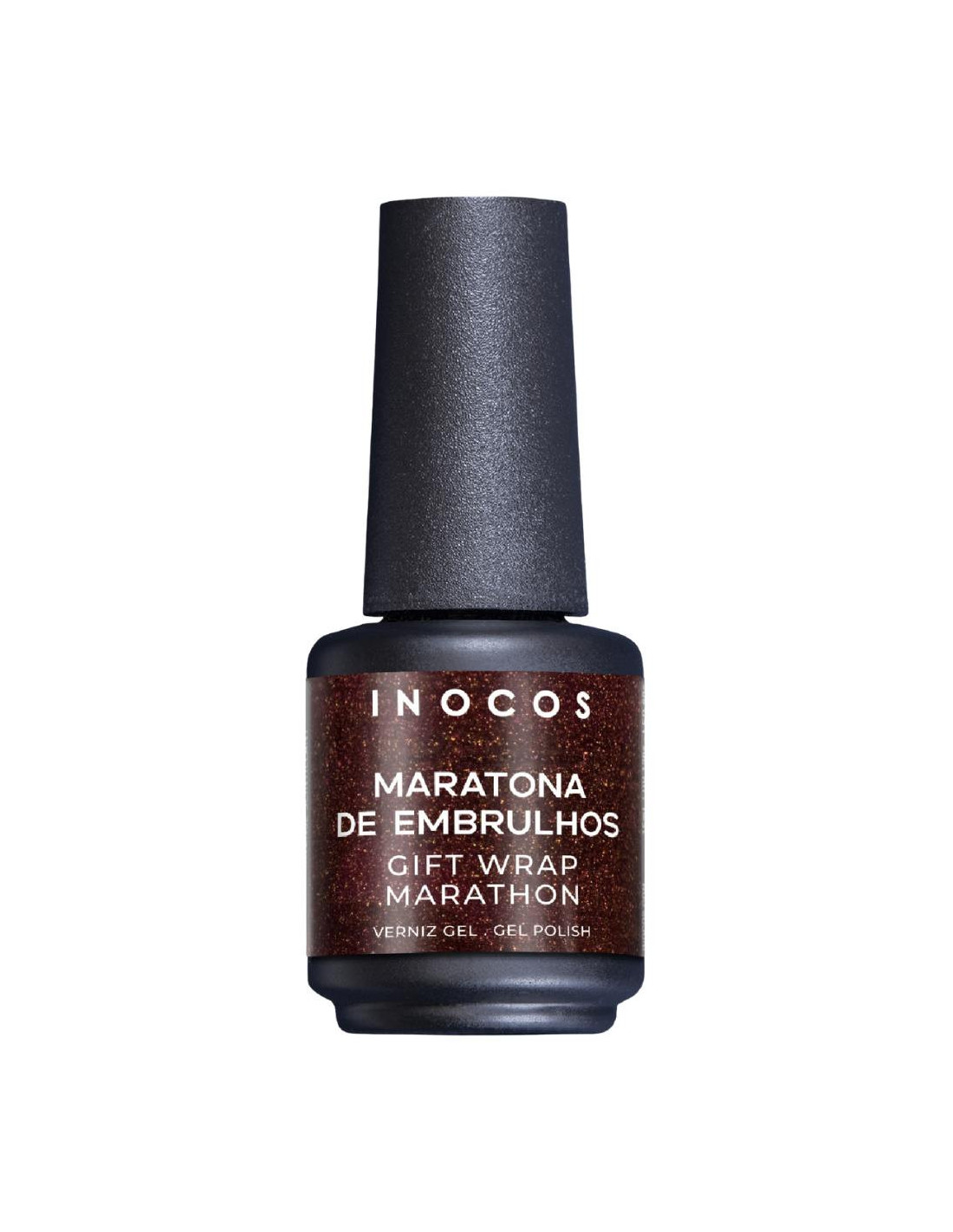 Entre no espírito frenético e divertido das festas com o Verniz Gel Inocos O Típico Natal GP503 "Maratona dos Embrulhos".