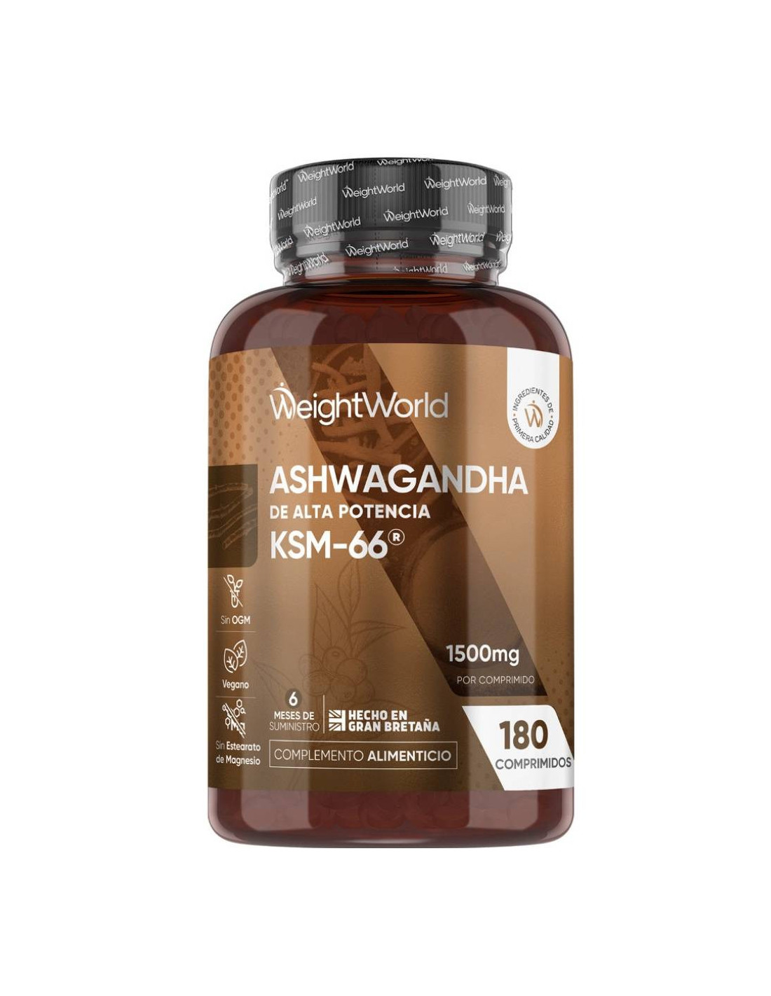 Cada comprimido fornece 1500 mg de Ashwagandha KSM 66, padronizado para 5% de withanolides, o que garante uma das concentrações mais potentes do mercado. A fórmula é 100% natural, vegana, sem glúten, sem transgênicos e sem estearato de magnésio.