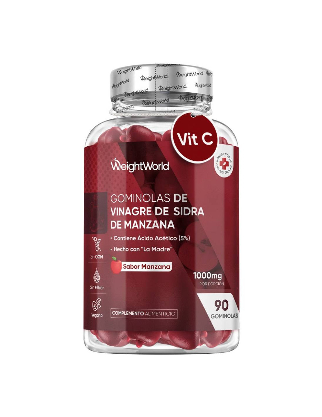 As gomas de vinagre de maçã da WeightWorld combinam tradição e ciência em uma fórmula deliciosa, prática e natural. Cada porção diária (2 gomas) fornece 1000 mg de vinagre de maçã não filtrado, conhecido como “A Mãe”, além de vitaminas essenciais (C, B6, B9 e B12) e pó de beterraba. Esta combinação ajuda a apoiar metabolismo energético*, sistema nervoso*, função imunológica* e bem-estar geral*.