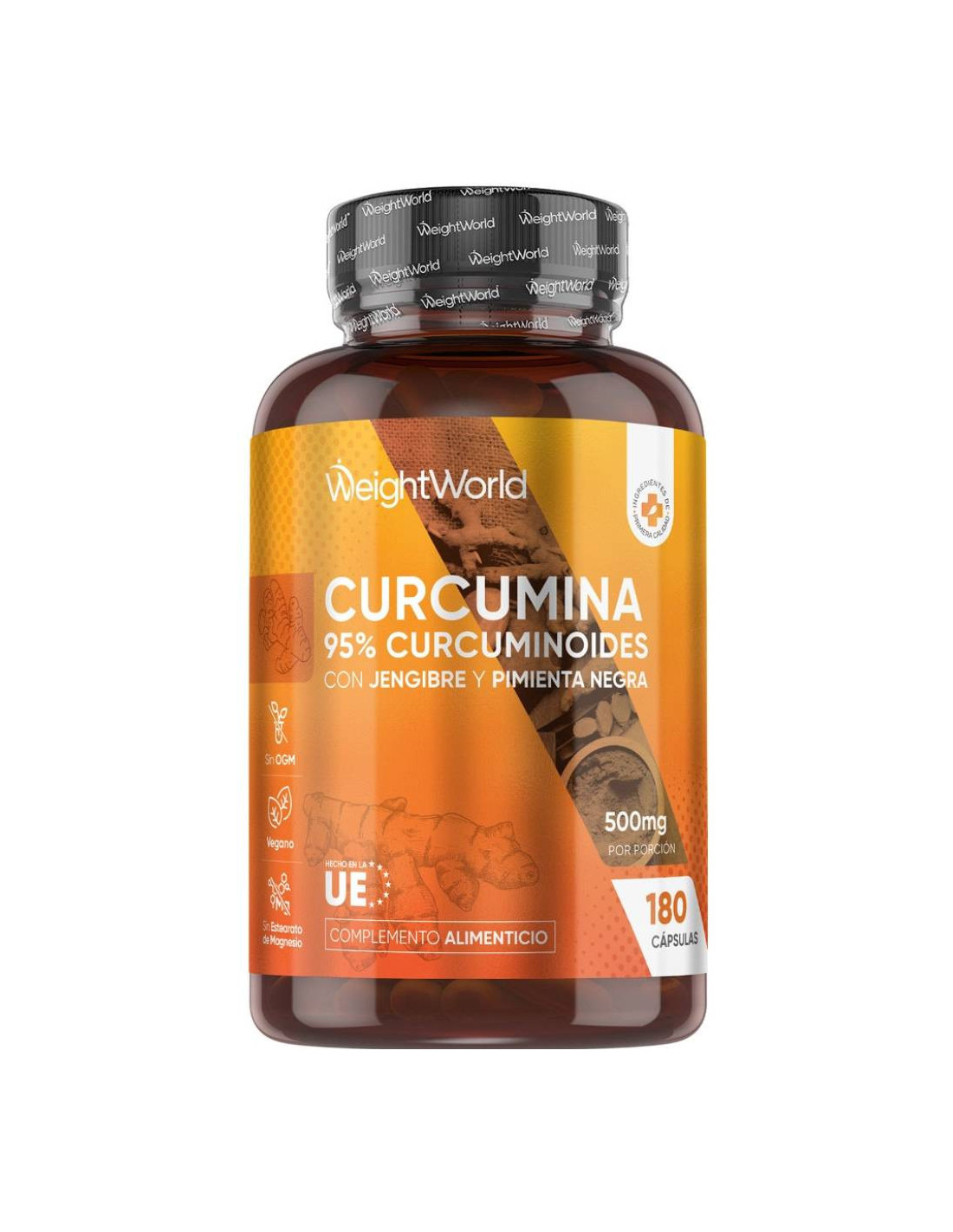 O suplemento Curcumina com Gengibre e Pimenta-do-Reino da WeightWorld combina curcumina de alta potência (95% curcuminoides) com gengibre e pimenta-do-reino, proporcionando suporte natural para músculos e articulações.