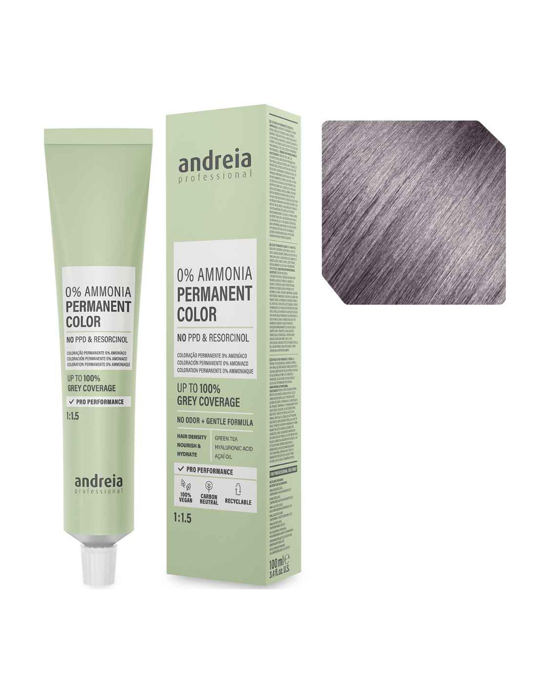 A linha Andreia Professional 0% Ammonia foi desenvolvida para oferecer a máxima performance de cor com total respeito pela fibra capilar. O tom 8.21 Louro Claro Irisado Cinza é ideal para matizar e colorir, proporcionando um tom de louro sofisticado e "gelado". A sua tecnologia de pigmentos frios impede que a cor desbote para tons quentes indesejados, mantendo a pureza do louro por muito mais tempo.