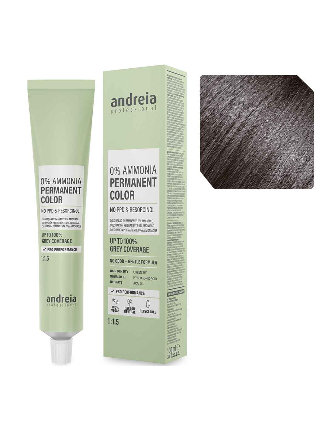 A linha Andreia Professional 0% Ammonia oferece resultados de cor sofisticados com o máximo respeito pela fibra capilar. O tom 5.1 Castanho Claro Cinza é a escolha perfeita para quem deseja um castanho elegante e moderno, com um acabamento frio que elimina os reflexos avermelhados ou alaranjados.