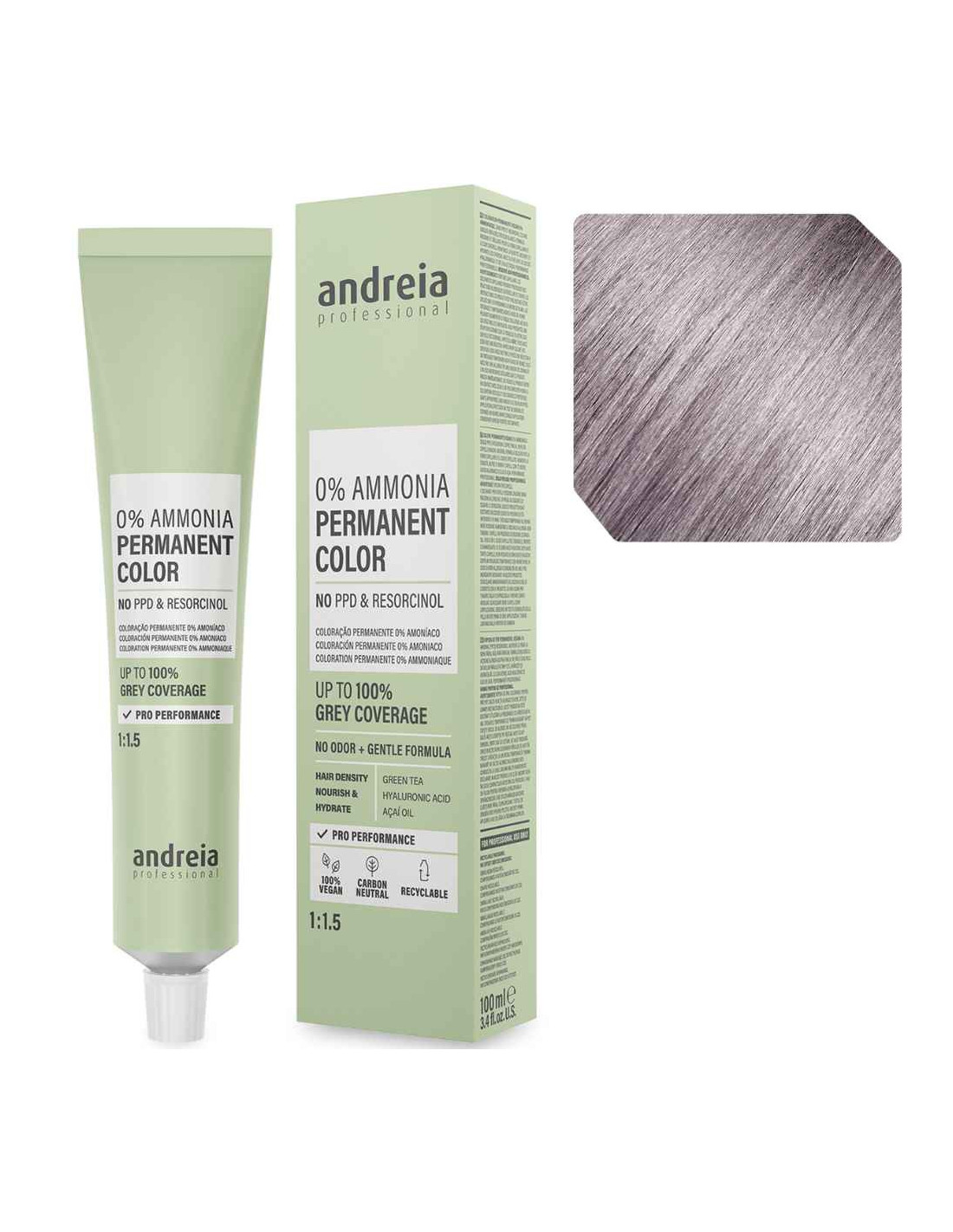 A linha Andreia Professional 0% Ammonia oferece uma performance de cor excepcional com o máximo respeito pela fibra capilar. O tom 9.21 Louro Muito Claro Perolado Cinza é ideal para matizar ou colorir bases claríssimas, eliminando qualquer vestígio de tons quentes indesejados. O reflexo perolado (.2) neutraliza o amarelo, enquanto o reflexo cinza (.1) controla os fundos ligeiramente mais quentes, resultando num louro sofisticado e mate.